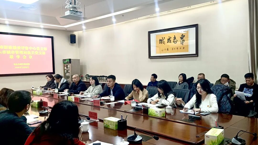 为深化党建引领作用,推动城市更新与党建工作深度融合,1月22日下午,市城管局机关党委、机关党支部、市政事业发展中心昆道所党支部与市财政绩效评价中心党支部开展联学会议。