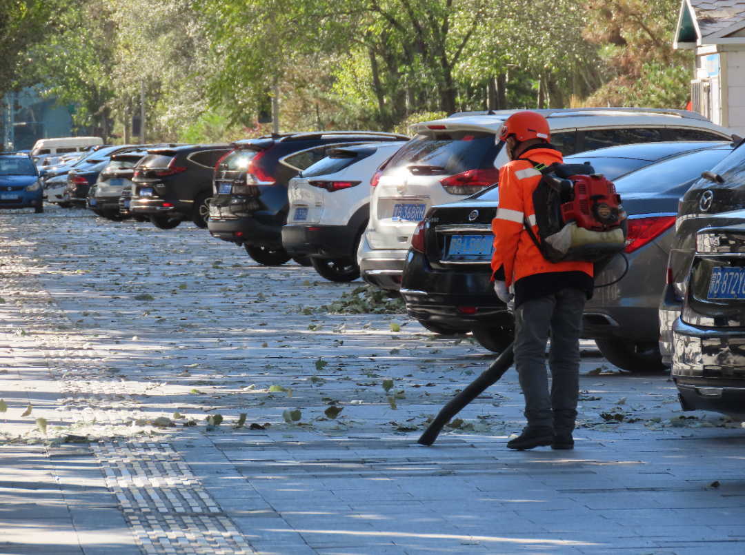 针对落叶夜间堆积、清晨易影响交通的特点,机械化清扫一公司实行 “昼夜作战” 模式,调整作业时间、延长清扫时长。夜间,作业车辆开启警示灯,在确保安全的前提下开展不间断清扫,及时清理清运落叶;清晨天未亮,党员先锋队队员与环卫工人便已到岗到位,对路面进行二次清扫和精细化保洁,确保市民清晨出行时道路整洁畅通。