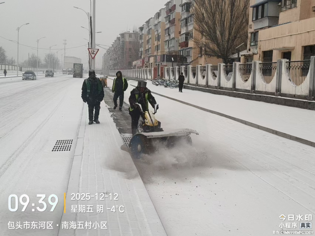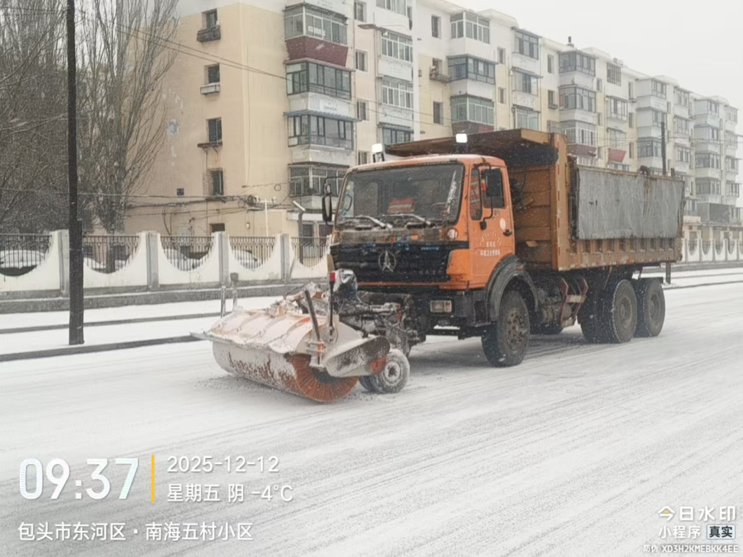 12 月12日,受寒潮天气影响,我市迎来新一轮雨雪天气。为降低持续性降雪带来的不利影响,保障市民群众安全出行,东河区城市管理综合执法局提前部署、全员上岗、随下随清,全力做好清雪除冰、防隐患保畅通工作。