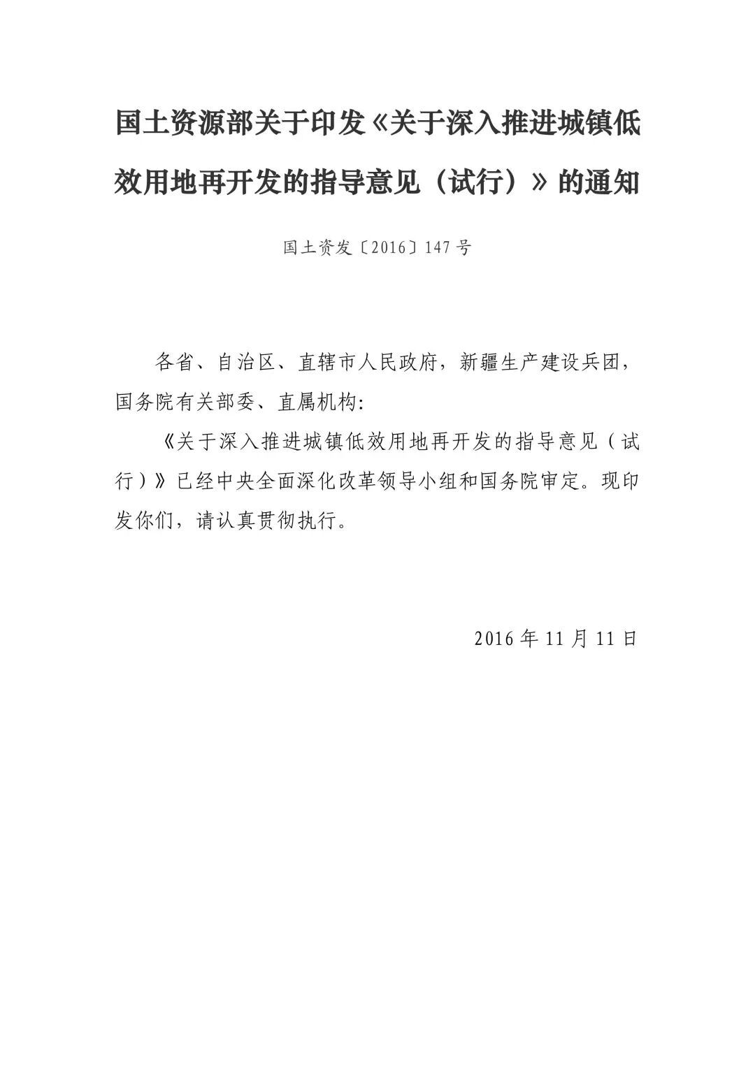 【包头市城市更新行动之国家资讯】——国土资源部关于印发《关于深入推进城镇低效用地再开发的指导意见(试行)》的通知