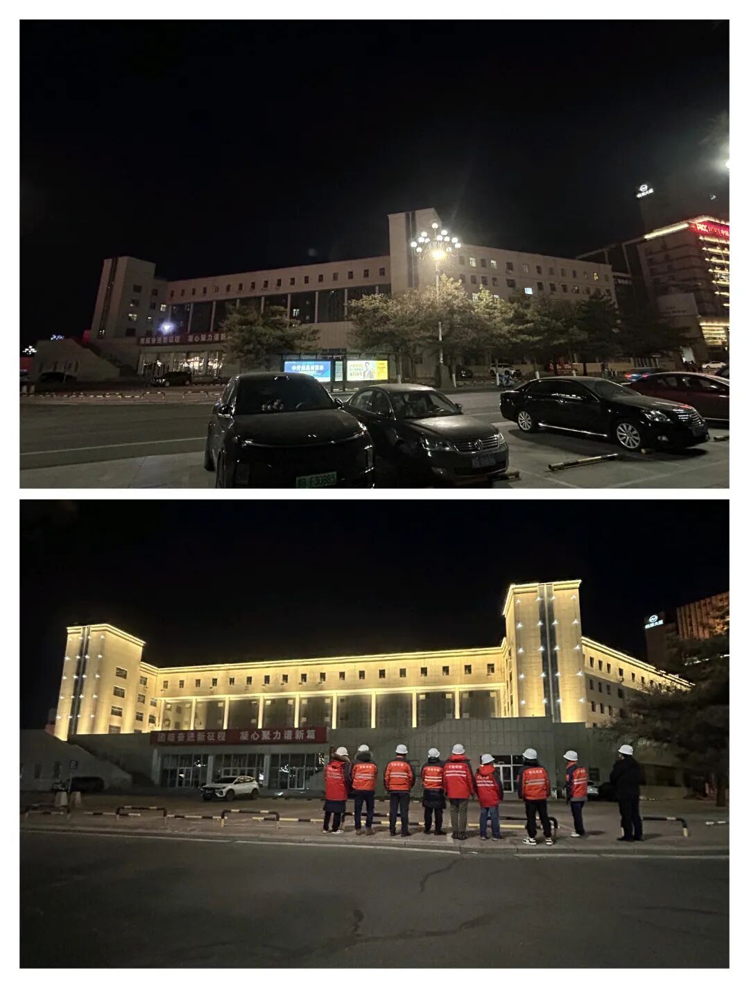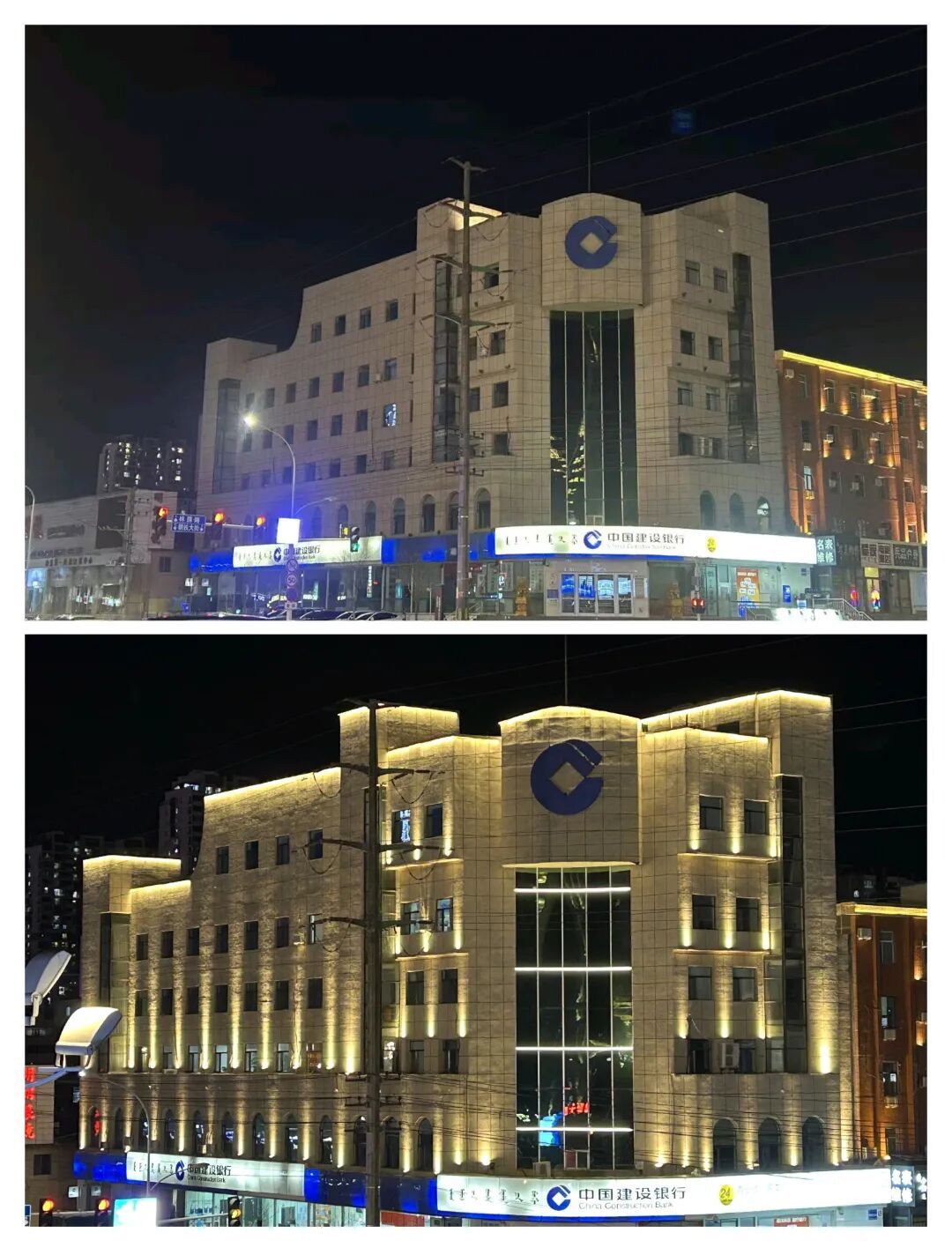 市政事业发展中心技改创新党员先锋队,创新提出“集约节约、精准提升”改造思路,量身定制“一楼一策”实施方案——通过“利旧增效+局部升级”策略,对原有灯具进行精细筛选:将光衰程度较轻的旧灯具优化用于建筑侧立面,同时在主立面更新为高效节能的新型灯具,并巧妙融入可动态调控的光影效果。
