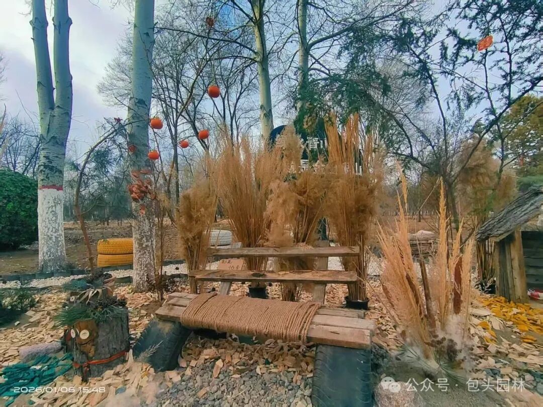 科员郝玲嘉多年坚持手工改造旧物的小爱好,被科长敏锐发现并获科室全力支持。这一创意与锦林公园管护所“精品景观打造”需求完美契合,更是园林中心节约集约理念的持续践行。所长主动安排场地、全程跟进,保障施工进展。郝玲嘉带领团队利用休息时间,系统收集枯枝、落叶、旧木板、松果等园林“废弃物”,凭借专业审美与创新思维,打破了北方冬季依赖外购装饰的传统模式。