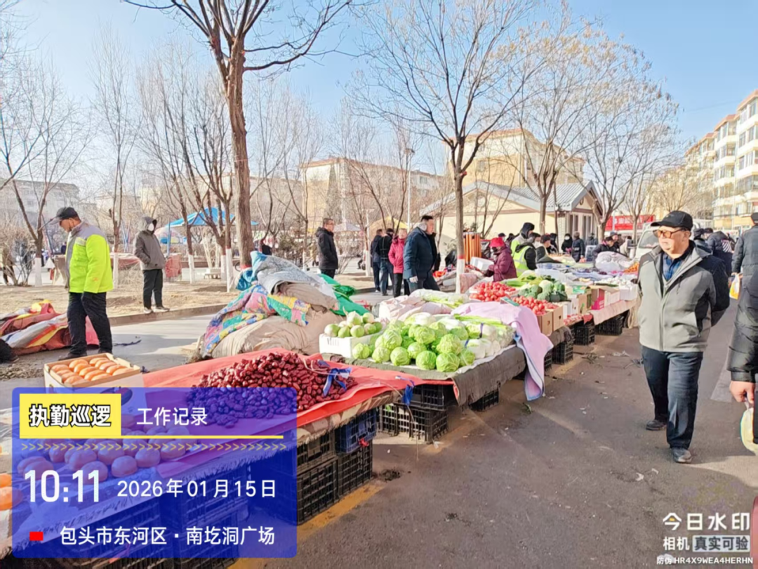 南圪洞早市作为东河区人气最旺的便民市场之一,承载着周边居民的日常采购需求,但部分商户为扩大经营面积,擅自搭建简易棚亭、延伸遮阳棚,不仅挤占人行道和消防通道,导致早市高峰期交通拥堵,更因设施简陋、布局杂乱存在结构安全隐患,同时影响市容环境,成为城市精细化管理的难点。