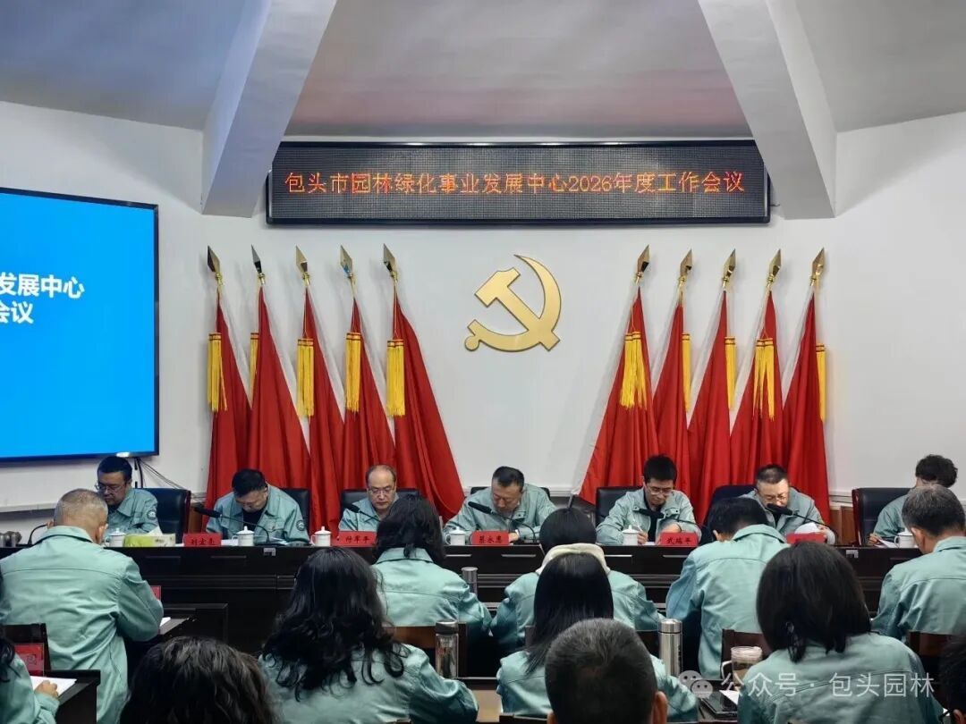 会议传达学习了中央、自治区、包头市市委城市工作会议精神,全国、全区住房和城乡建设工作会议精神,市城管系统2026年度工作会议精神。部署了2026年园林中心信息工作。市城市管理局党组成员、市园林中心党委书记、主任蔡永惠回顾了2025年园林中心取得的成绩,结合我市城市园林绿化现状及存在问题,谋划了未来工作思路并部署了2026年重点工作任务。