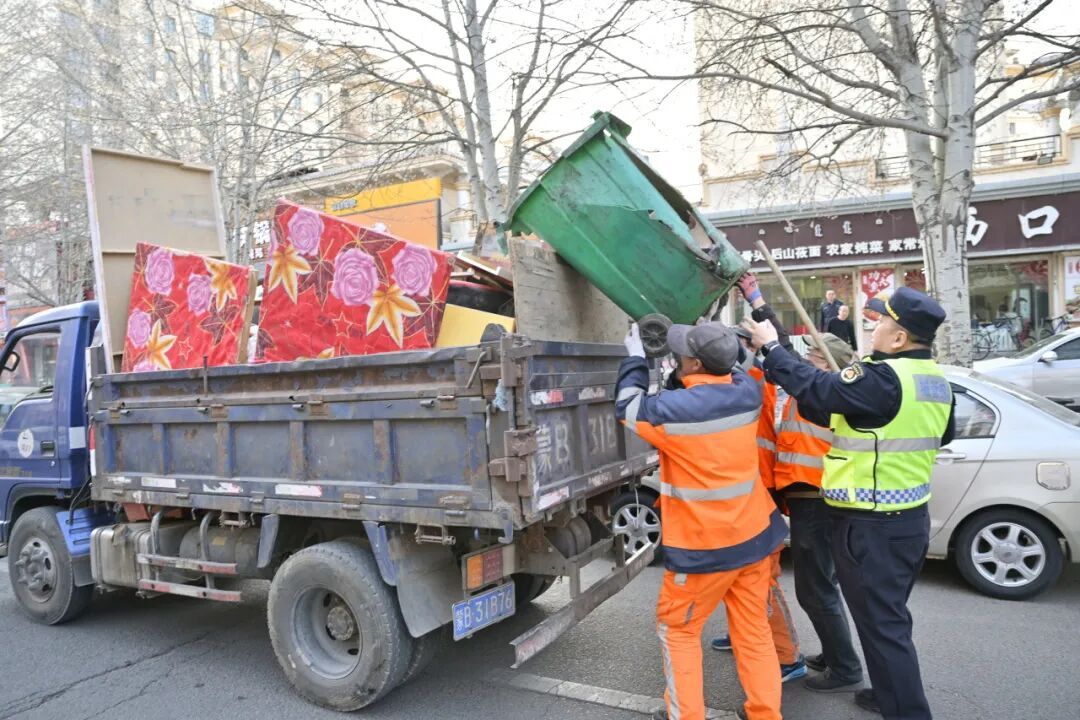 执法人员重点针对沿街商户出店经营、占道堆物、餐厨垃圾收集等现象进行规范。通过“逐户上门整治+宣传”的模式,引导商户清理门前杂物,规范经营行为;对道路两侧违规设置的灯箱广告、条幅以及长期堆放的建筑垃圾进行全面清理,有效净化了视觉空间;对流动摊贩占道经营问题,采取“错时执法+定点值守”的模式,加强学校、农贸市场周边等重点路段的管控力度,并向摊贩讲解占道经营存在的安全隐患及对市容环境的影响,积极引导其进入附近的便民疏导点规范经营。