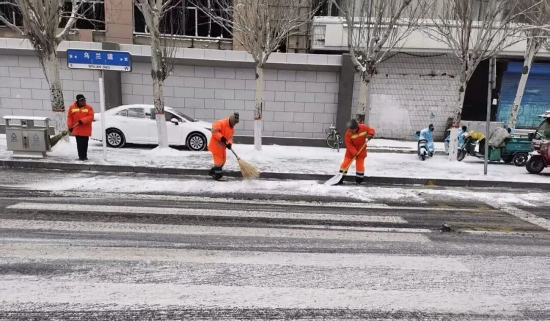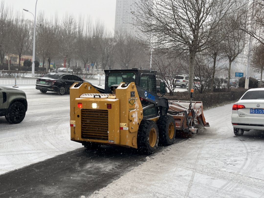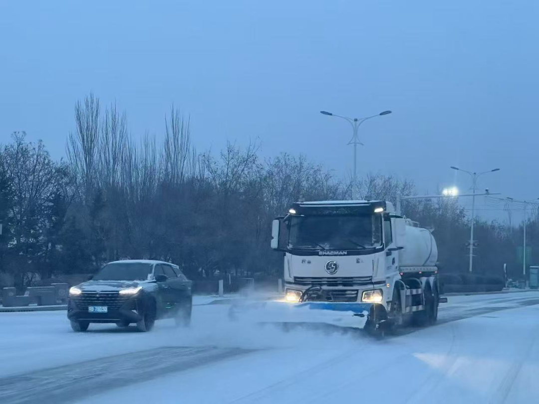 二是优化作业策略,提升清雪除冰效能。12日清晨6时左右,全市城管环卫部门全员出动。在作业过程中,各环卫作业企业遵循“先主干道、后次干道,先快车道、后慢车道和人行道”的原则,优先清除钢铁大街、民族东路、阿尔丁大街、建设路、复兴大街等主次干道以及医院、学校、火车站、农贸市场、商圈等重点区域的积雪。清雪机械的轰鸣声在寂静的道路中回响,成为保障城市市民出行的“守护之声”。