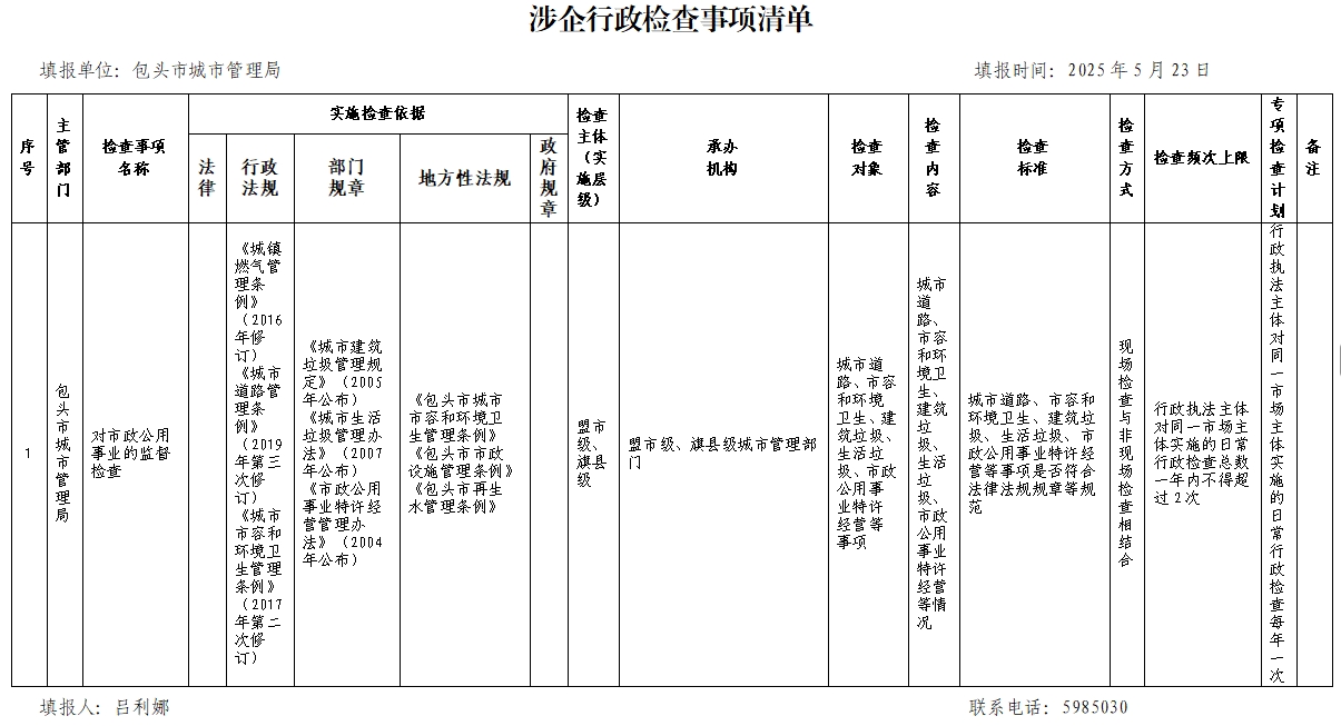行政执法事项清单、涉企行政检查事项清单
