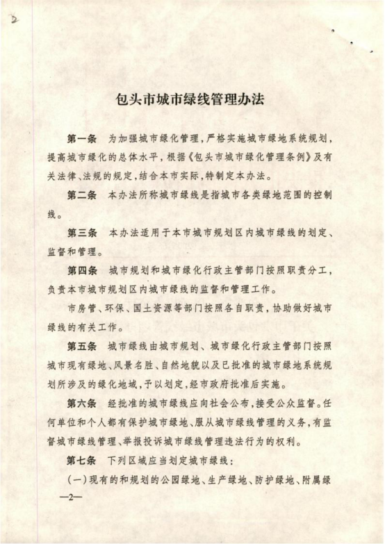 包头市人民政府办公厅 关于印发包头市城市绿线管理办法的通知