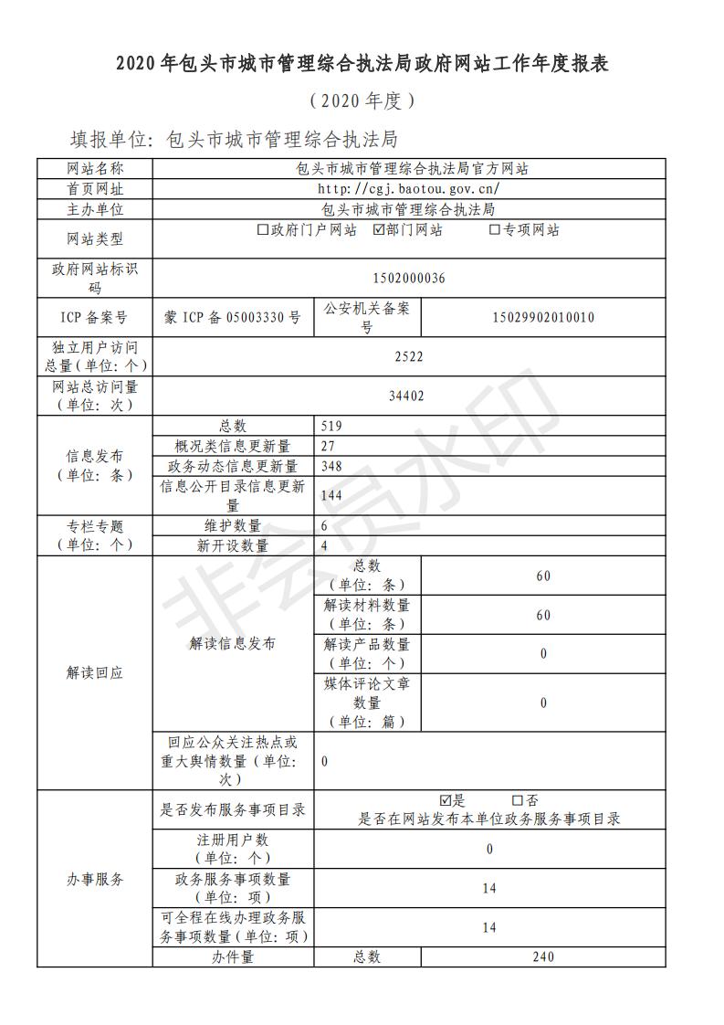 2020年包头市城市管理综合执法局政府网站工作年度报表