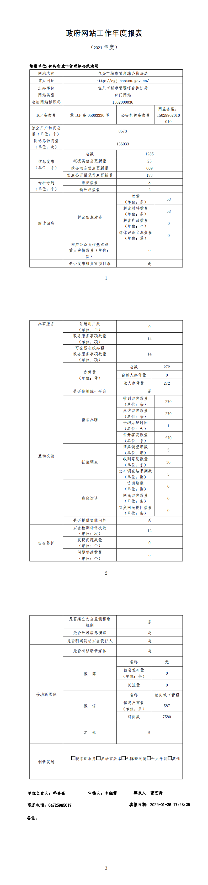 包头市城市管理综合执法局政府网站工作年度报表(2021年度)