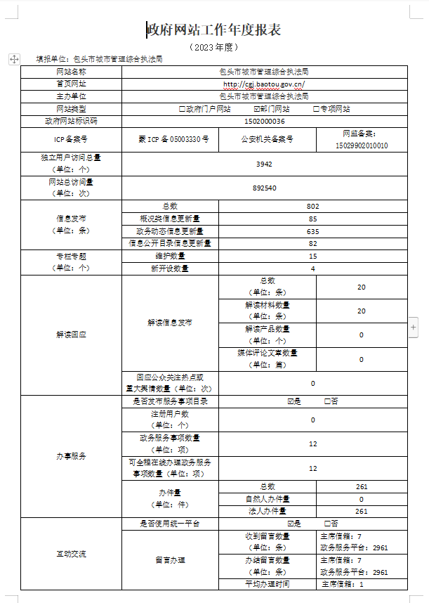 2023年包头市城市管理综合执法局政府网站工作年度报表