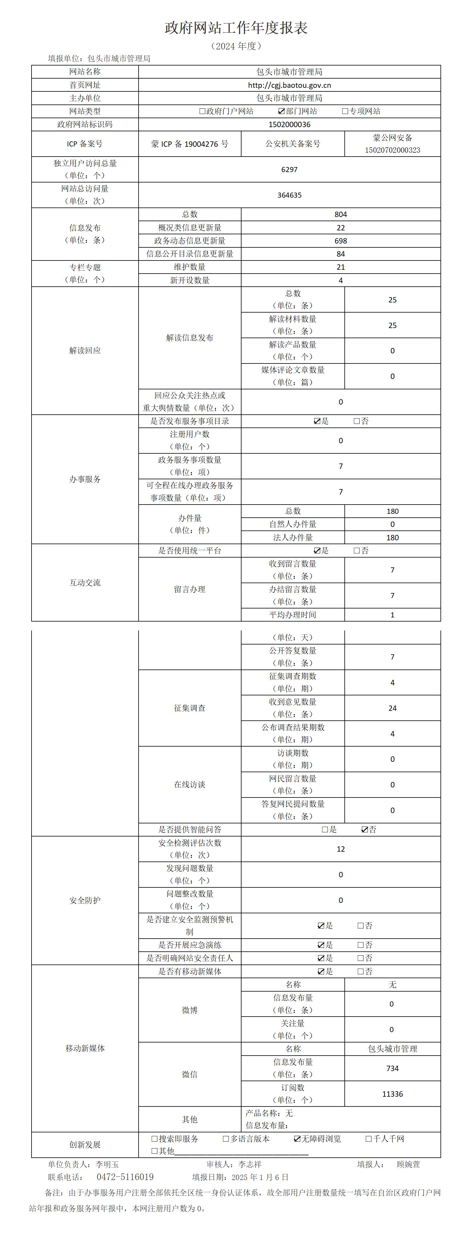 2024年包头市城市管理局政府网站工作年度报表
