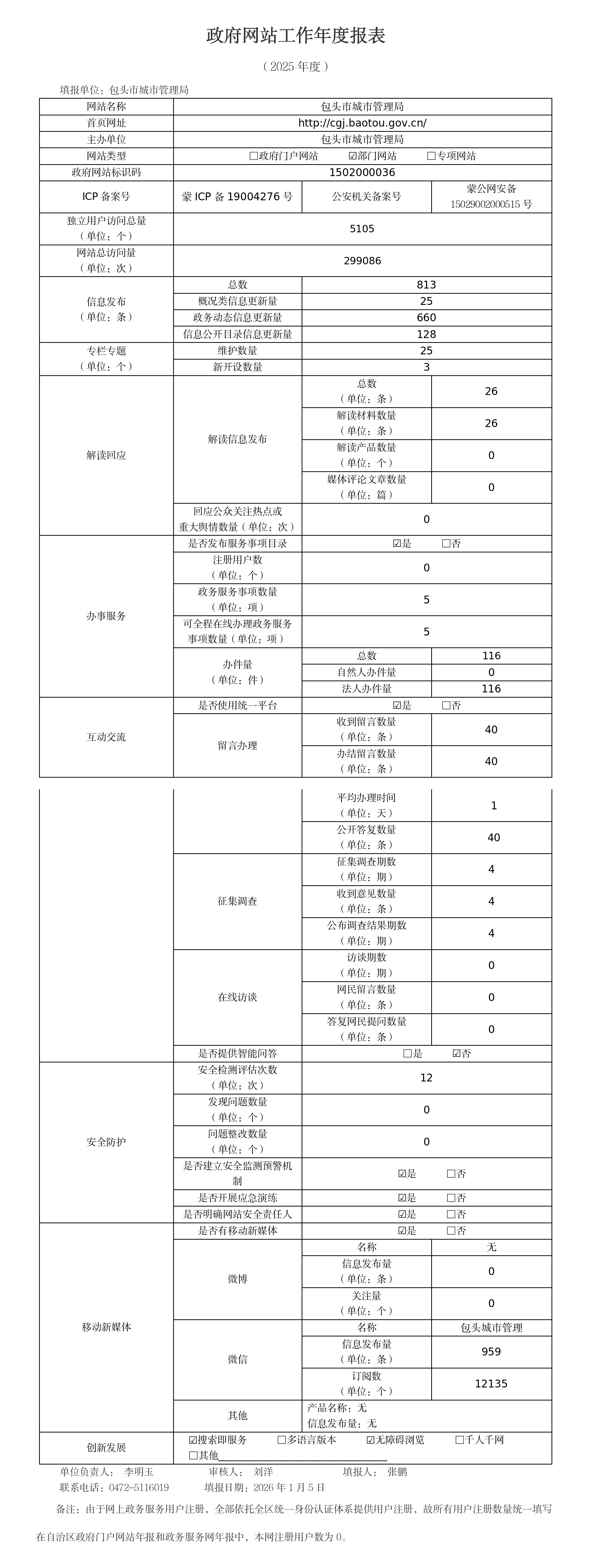 2025年包头市城市管理局政府网站工作年度报表